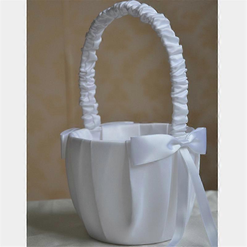 1pcs 22cm White Flower Basket Silk Wedding for Bride Girls Kids Hand Held Ceremony Party Decorations