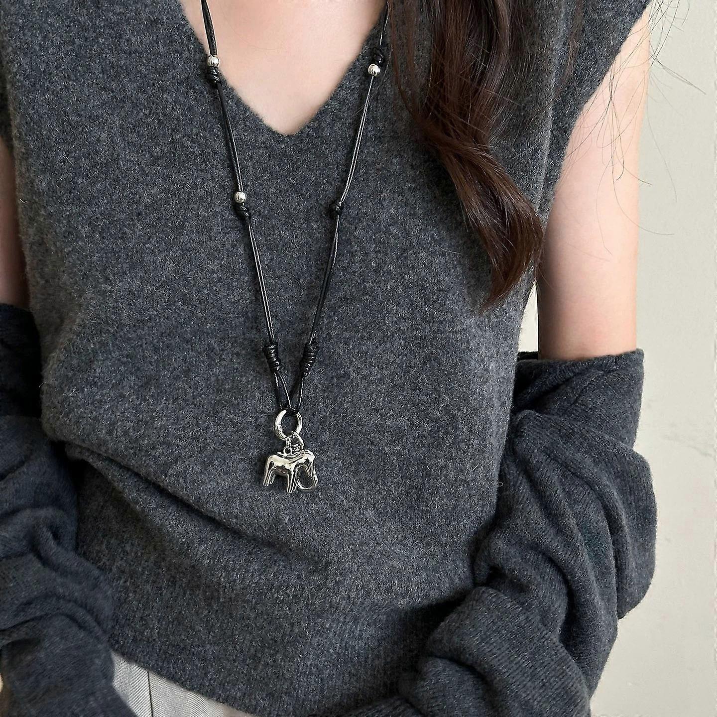 Fashion Smooth Surface Horse Chain Tassel Pendant Necklaces for Women Silver Plated Snake Chain Long Sweater Chain