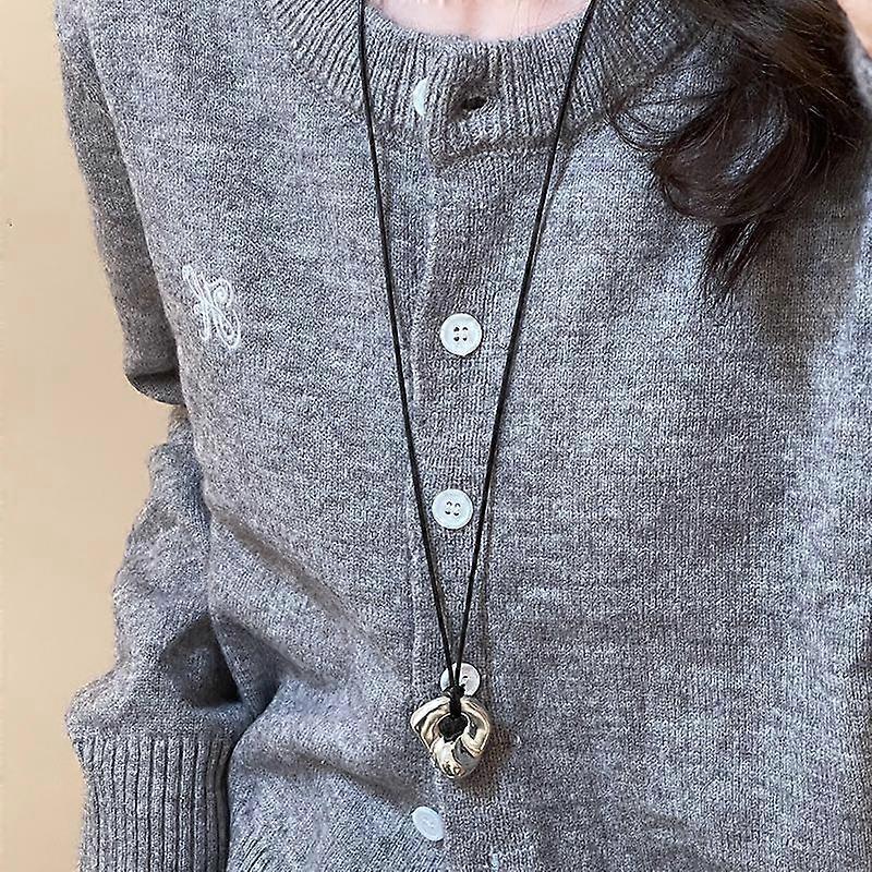 Vintage Irregular Geometric Circle Pendant Necklace for Women Adjcomtable Black Leather Rope Long Clavicle Chain Punk Jewelry
