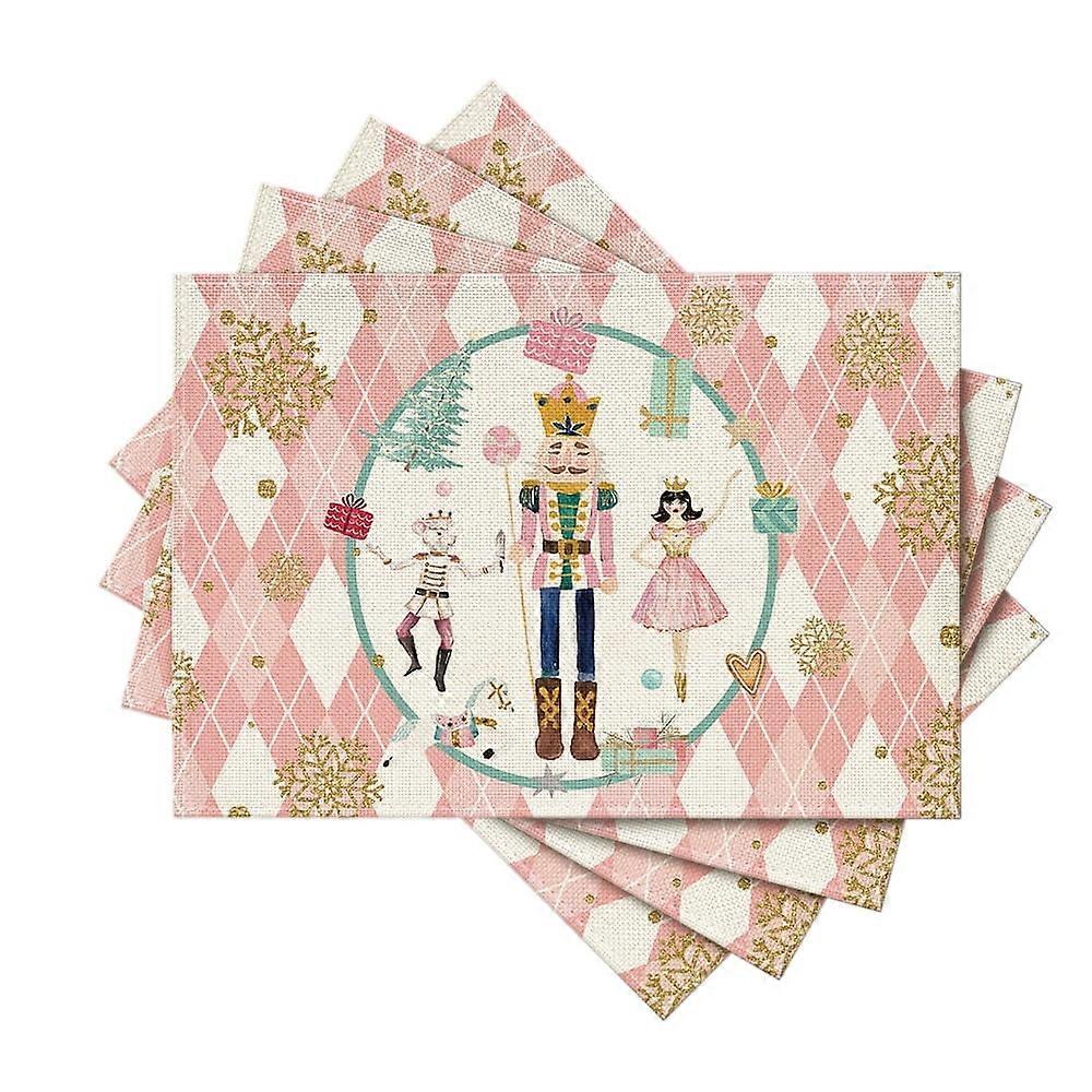 Smile Nutcrackers Xmas Christmas Placemats 12x18 Inch Set of 4 Pink