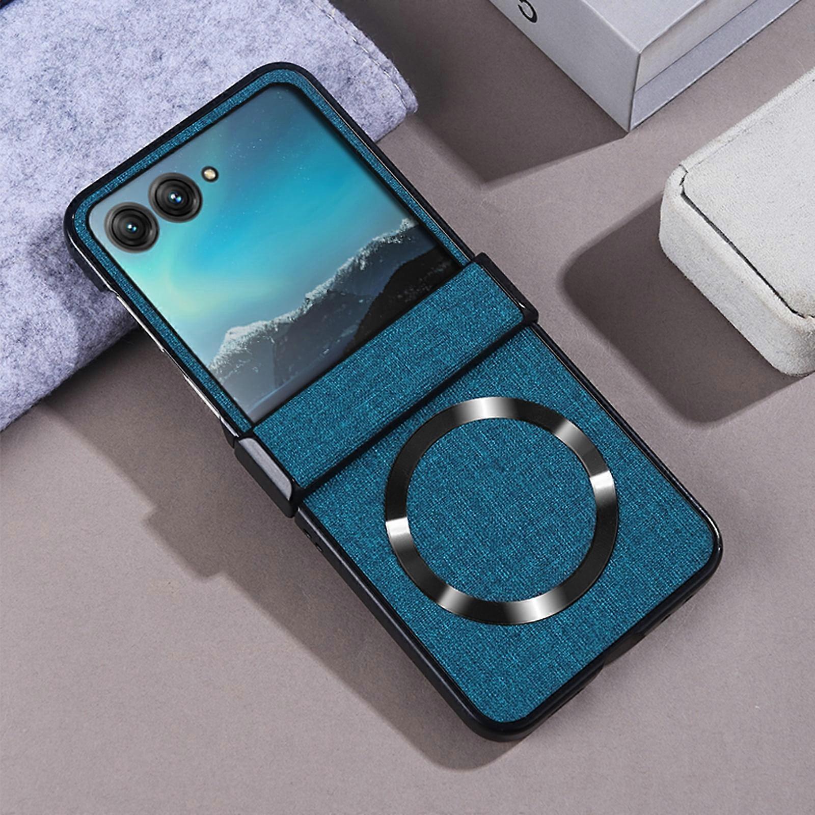 Motorola Razr 2024 Case, Built-in Screen Protector, Compatible with MagSafe, Shockproof, Hinge & Matte Protection, Dark Blue