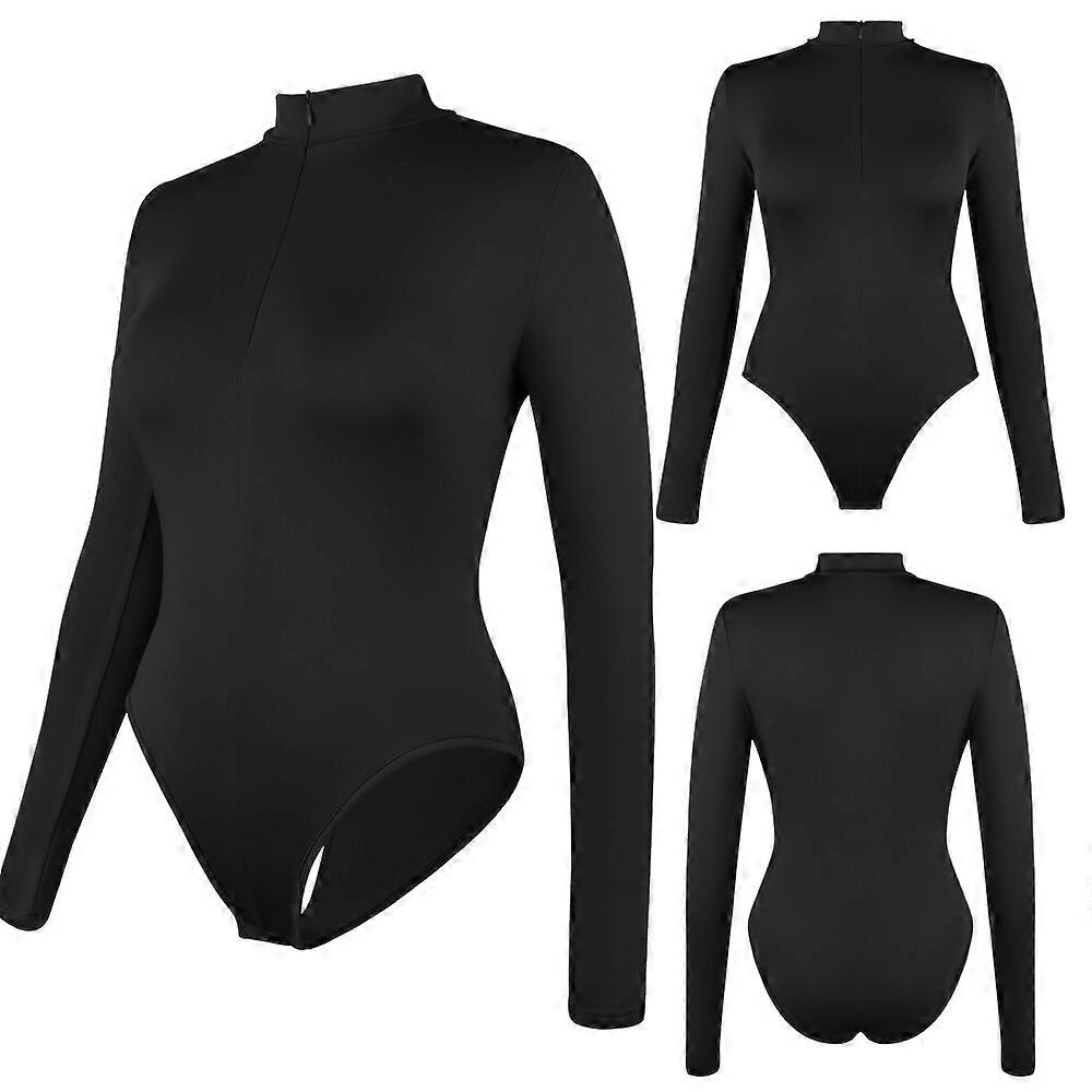Fleece Lined Long Sleeve Bodysuit for Women Mock Turtleneck Casual Leotard Tops