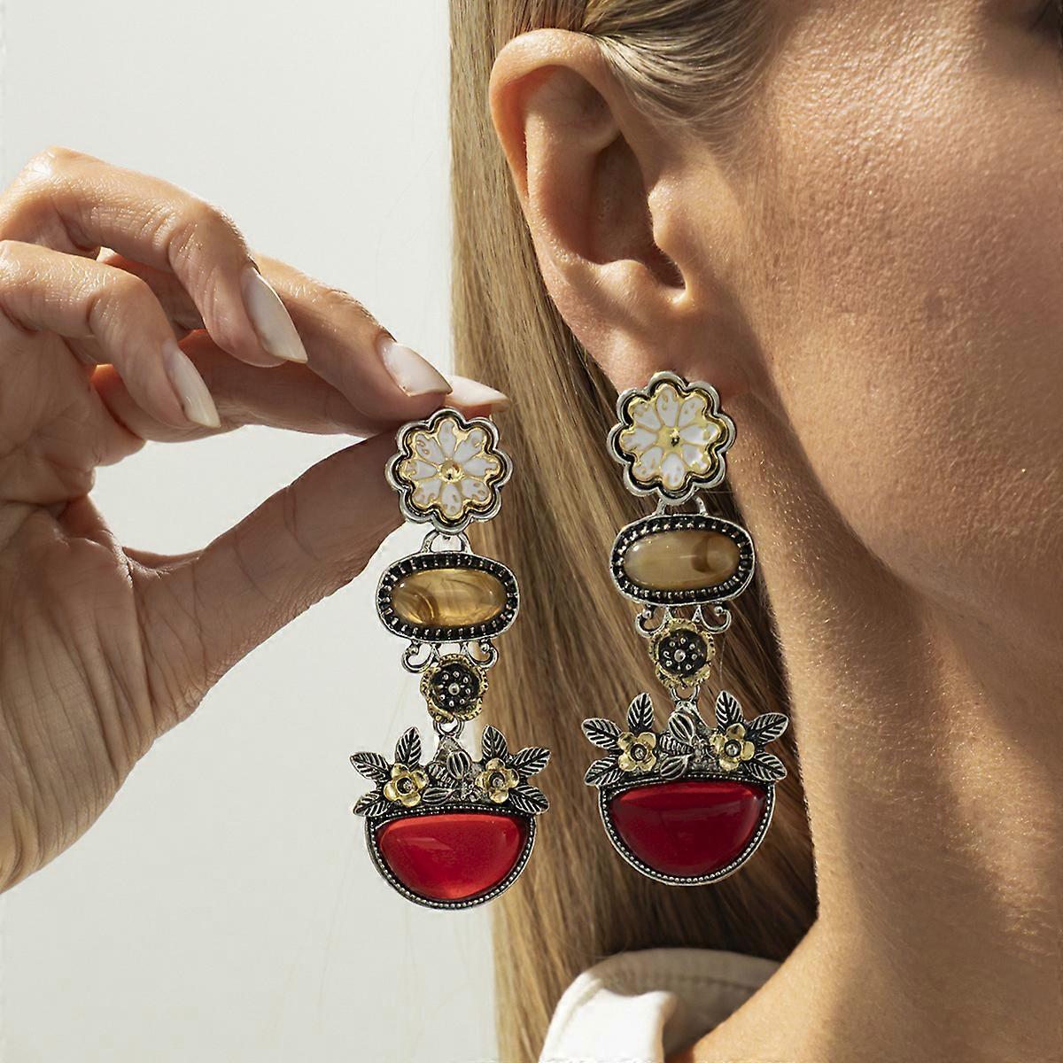 Vintage Daisy Flower Resin Earrings for Women Personality Multi-layer Long Drop Earrings Holiday Party Jewelry Gifts