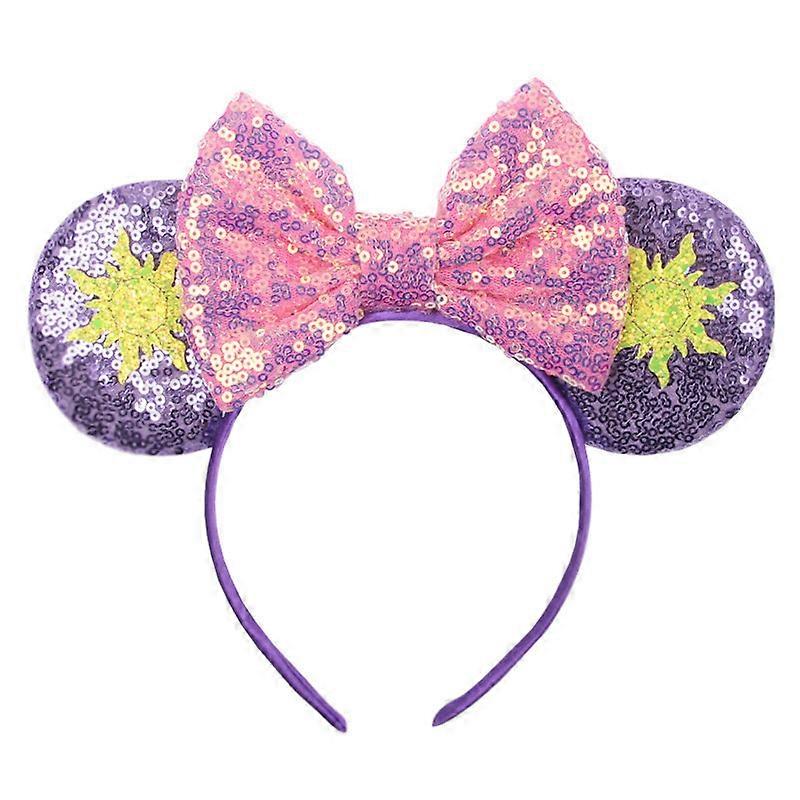 Mickey Mocome Rapunzel Hair Accessories Women Sun Flower Ears Headbands Kids Sequins Bow Chameleon Hairbands Tangled Headwear