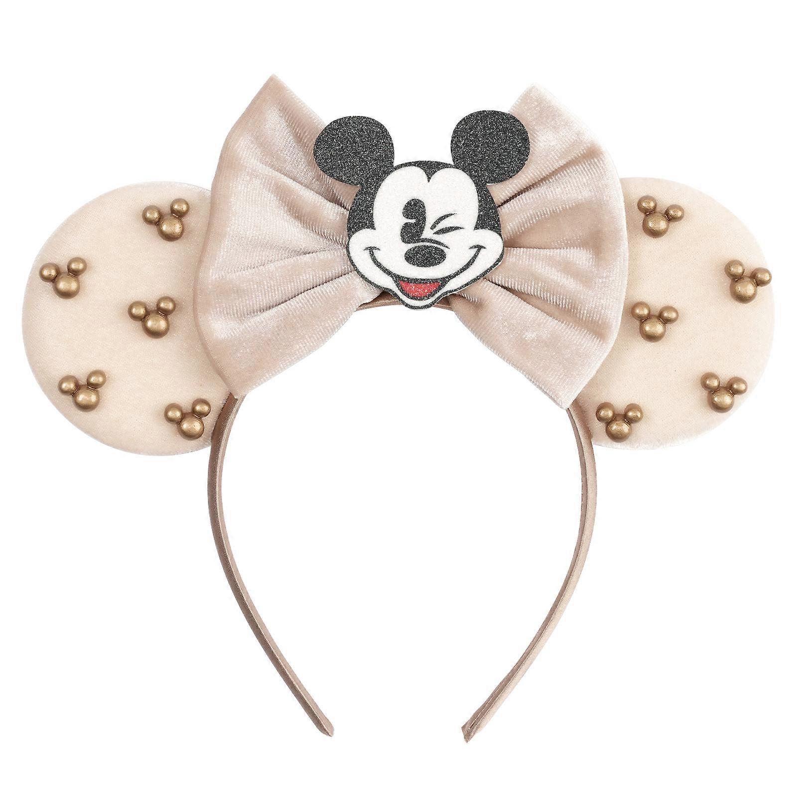 Disney Pearl Mickey Headband Amcomement Park Children's Decoration Suede Mickey Headpiece Bow Headband