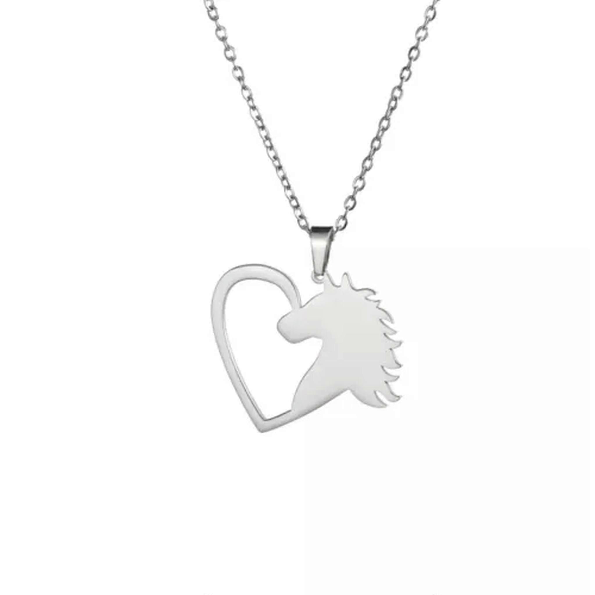 RSAMD Running Horse Pendant Necklaces Stainless Steel Heart Horse Animal Jewelry-A Steel
