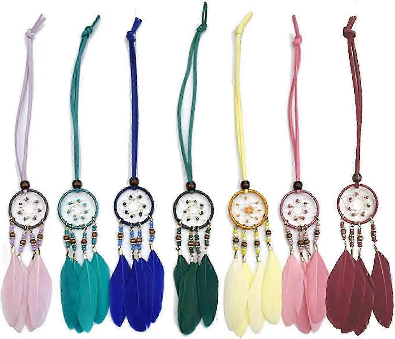 A 7-piece set with a Mini Car Interior Hanging Dream Catcher and a Bag, this Cute Bohemian Pendant with Natural Feathers is a small Car Accessory.