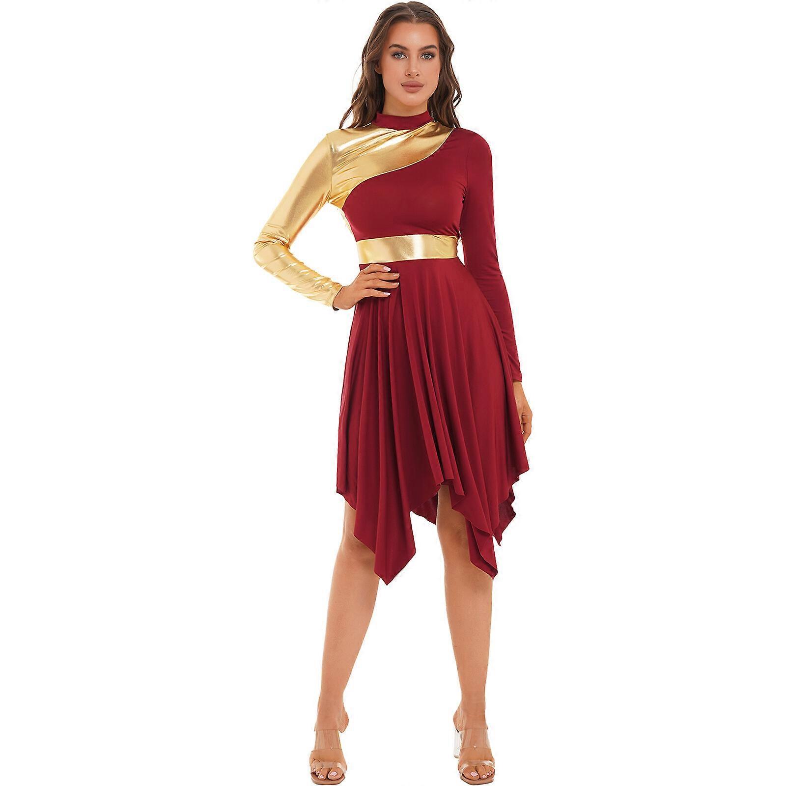 Womens Color Block Praise Dance Dress Long Sleeve Liturgical Church_Dancewear