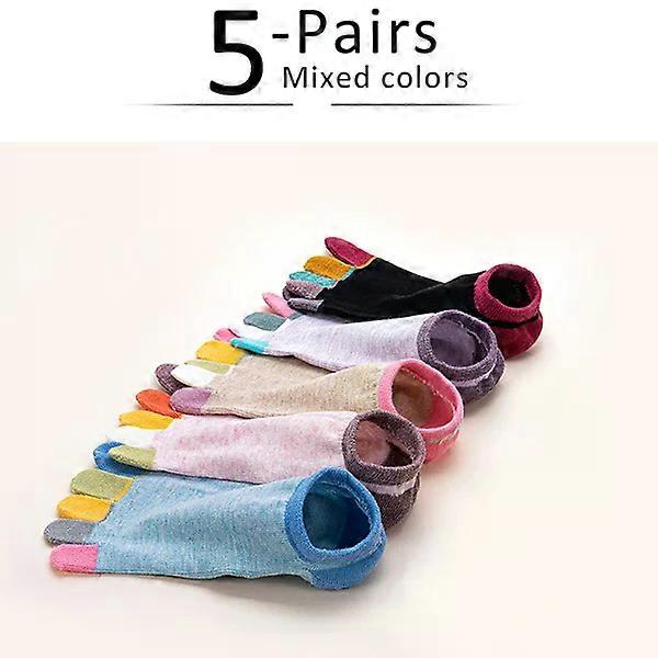 5 Pairs Spring No Show Toes?socks Pure Cotton Colorful Cute Casual Soft Breathable,Deodorant,Invisible 5 Finger Socks Harajuku