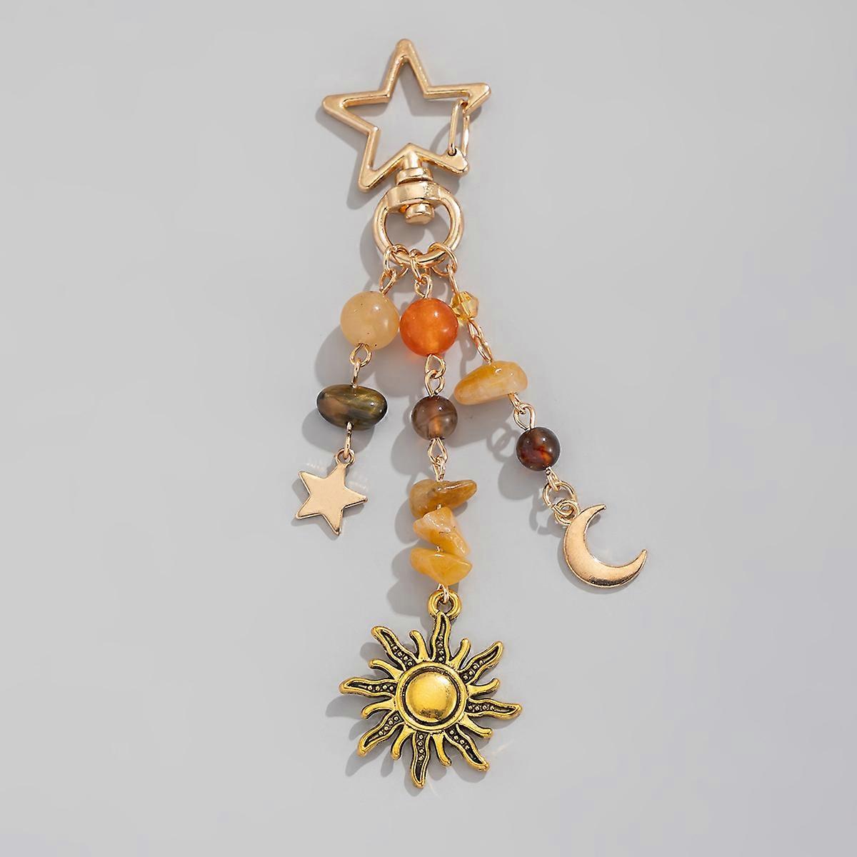 Punk Stars Moon Sun Pendant Bag Keychain for Women Girls Charm Boho Colorful Beads Key Ring Bag Chain Y2K Jewelry Gift New