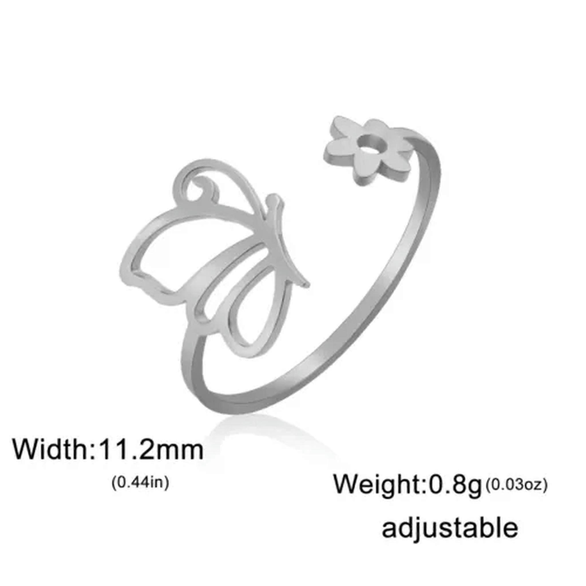 RSAMD Butterfly Flower Open Rings Stainless Steel Adjustable Ring Fashion Jewelry-Adjustable-Steel
