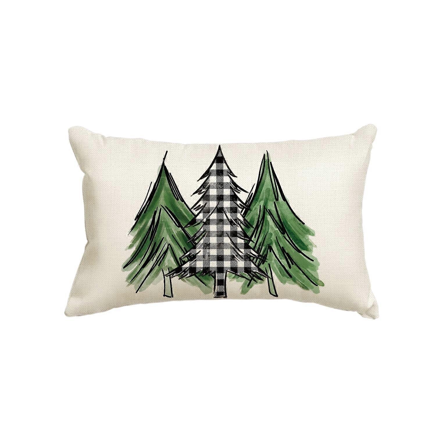 Sm:)e Watercolor Trees Christmas Pillow Cover 12x20 Inch, 1 Pc Winter Off White Farmhouse Decorative Pillow Case