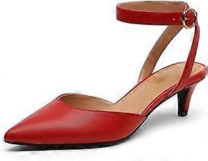 Women Close Toe Pumps Ankle Strap Low Kitten Heel Dress Pump Shoes Size 5-12