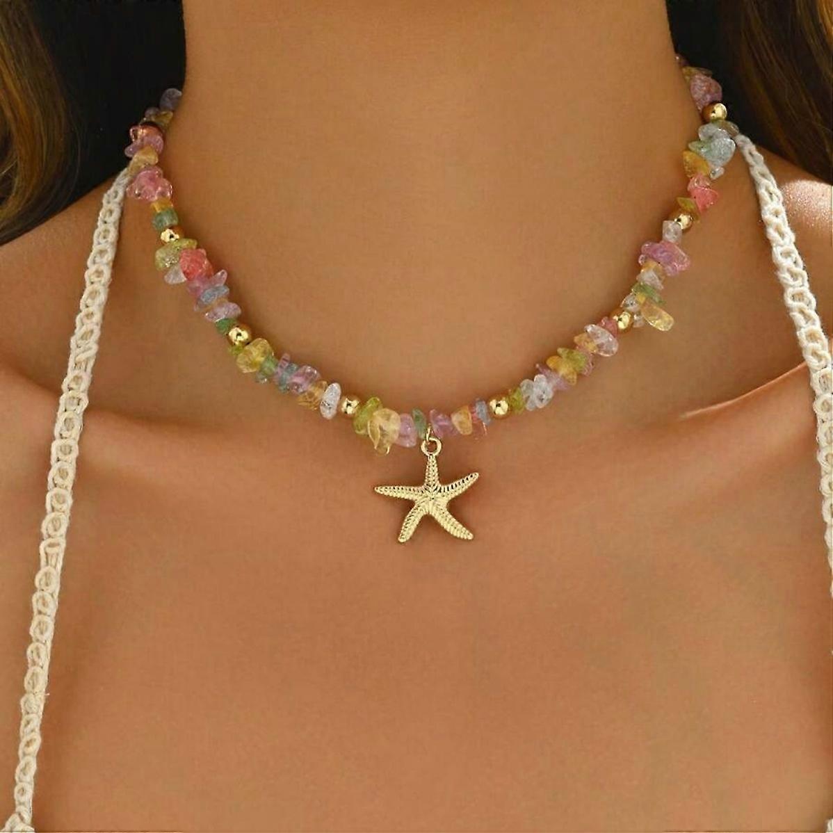 HOT Bohemian Beaded Starfish Pendant Necklace for Women Handmade Imitation Pearl Colorful Beads Choker Summer Beach Jewelry Gift