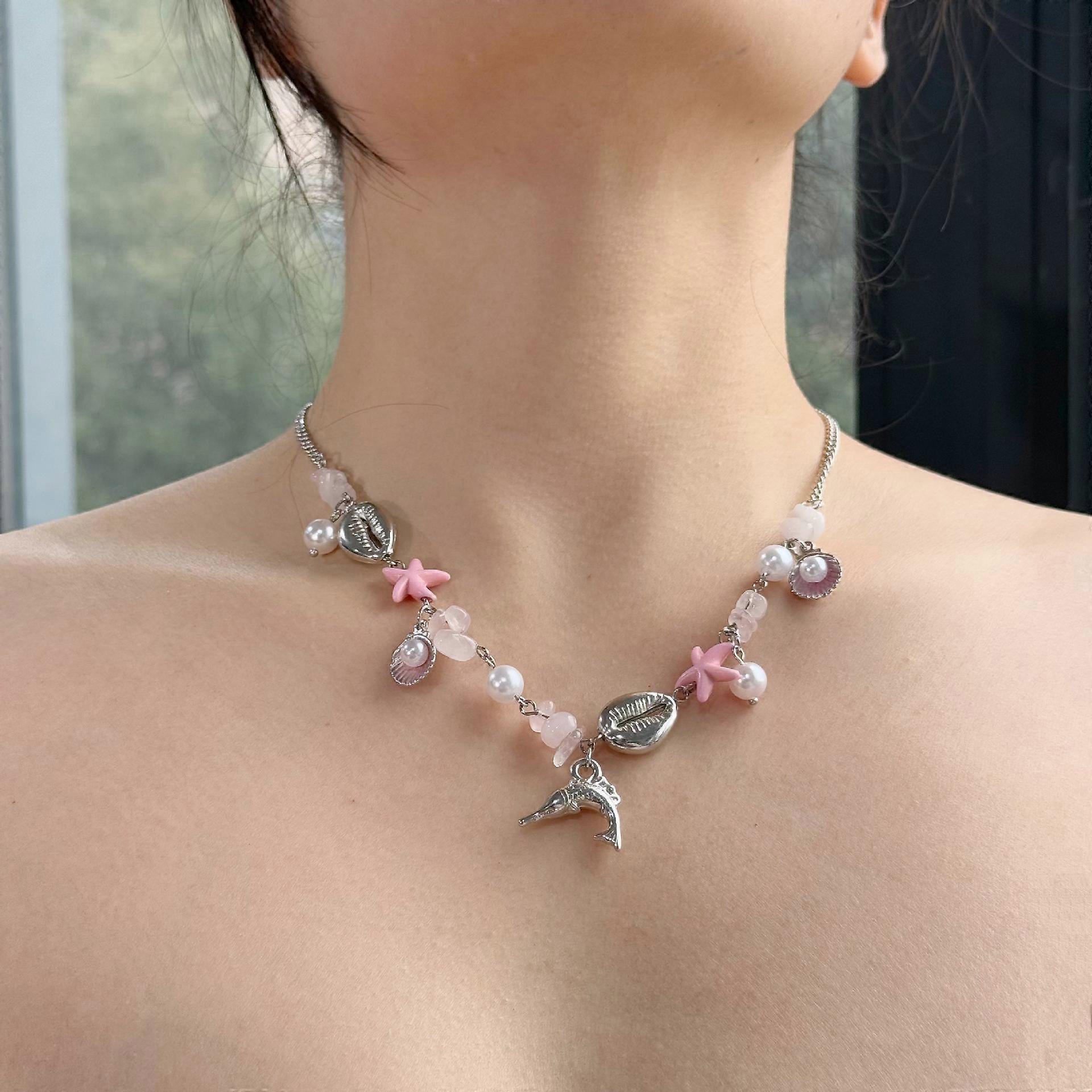 Elegant Imitation Pearl Starfish Shell Pendant Necklace for Women Bohemian Gravel Stone Choker Necklace Beach Party Jewelry Gift