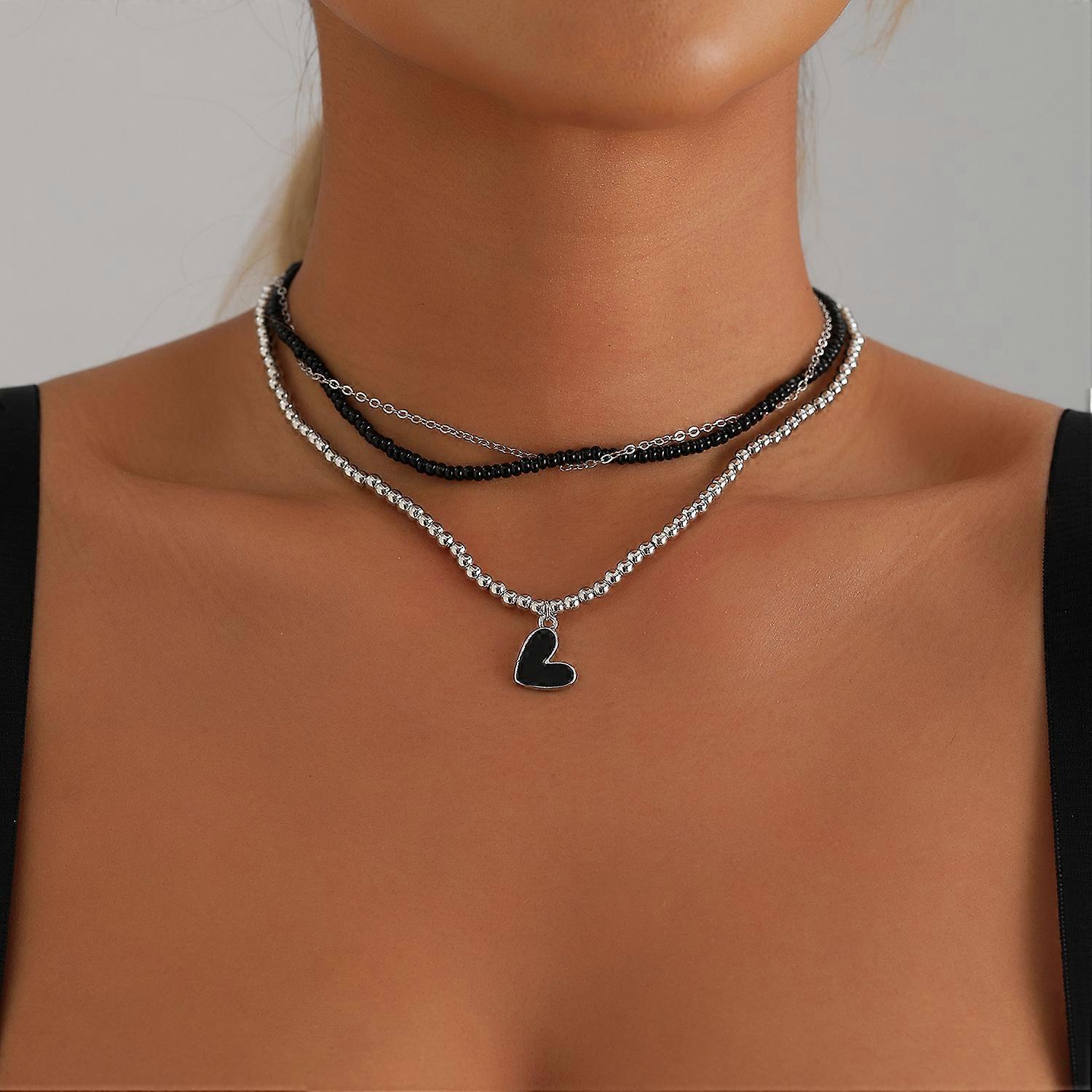 Fashion Y2K Heart Beaded Necklace for Women Boho Irregular Crystal Class Gravel Clavicle Choker Exquisite Jewelry Accessories