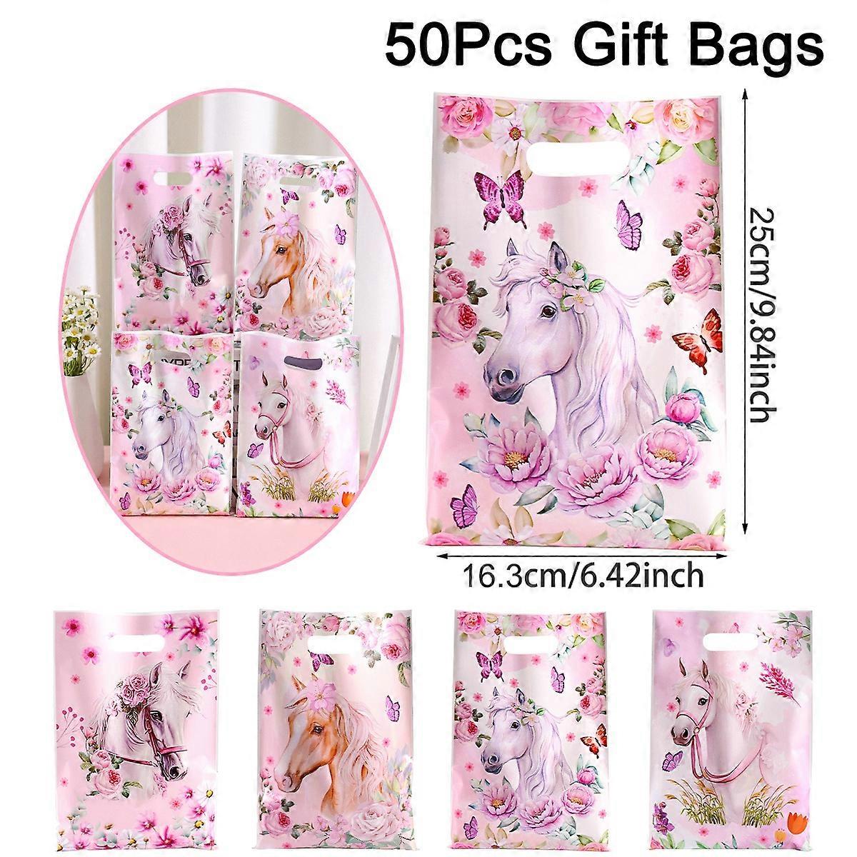 10/20/50pcs Mixed Pink Horse Gift Bags Flower Party Favor Bags 1st Birthday Wedding Girl Party Supplies