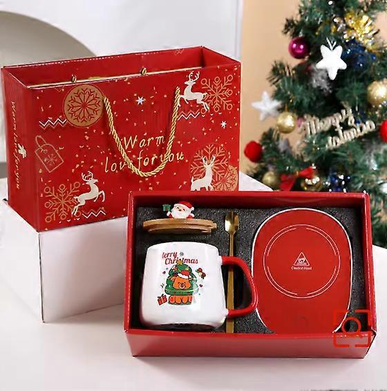 New Merry Christmas Gifts Kit Wooden Lid Santa Clacom Pattern Ceramic Mug Snowman Warm 55�� Teaspoon for Office Home come