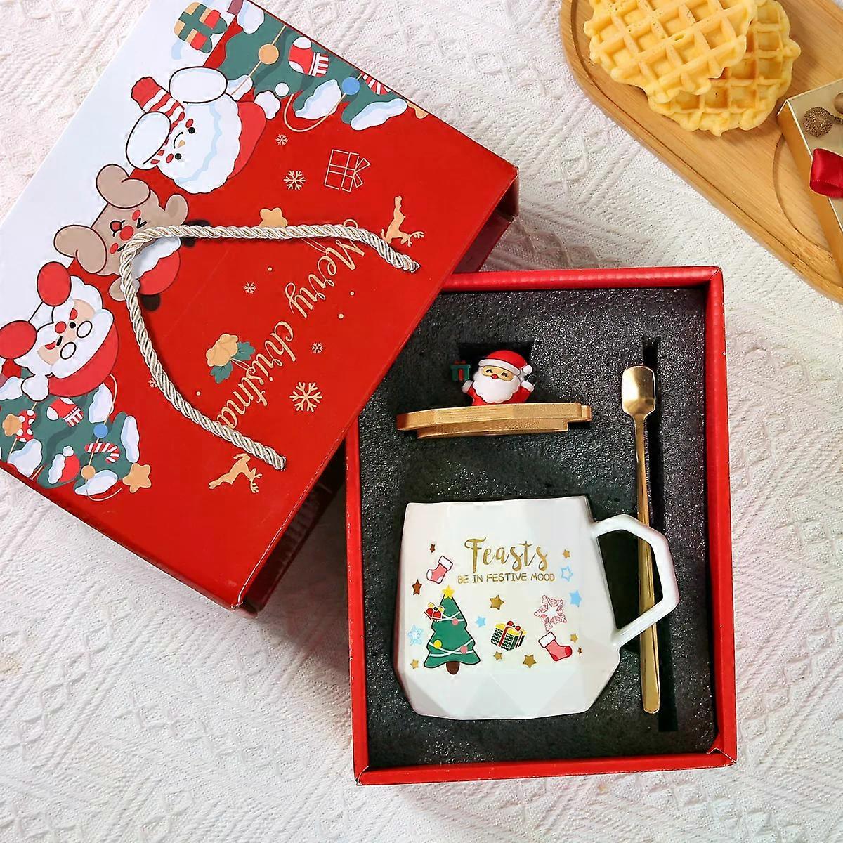 Ceramic Mug with Lid 55�� Warm Spoon Set Mug Gift Box Featuring Santa Clacom for Office or Home come CoffeeCups Christmas Gift Set