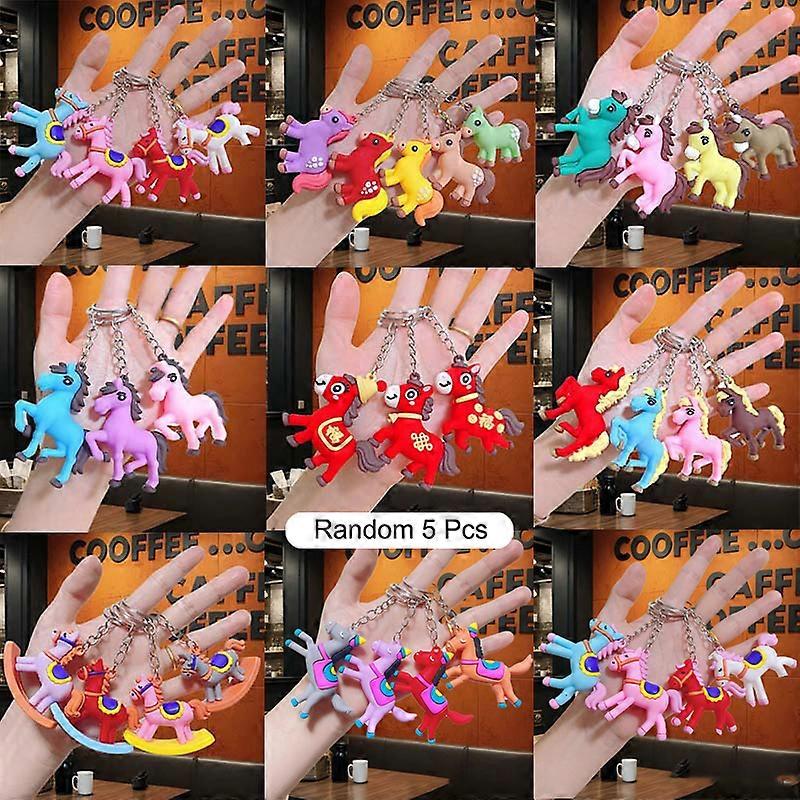 5Pcs 2026 Year Of Horse Pendant Cute Cartoon Chinese Zodiac Horse Lucky Keychain For Women Men Creative Bag Charm Accessory Gift