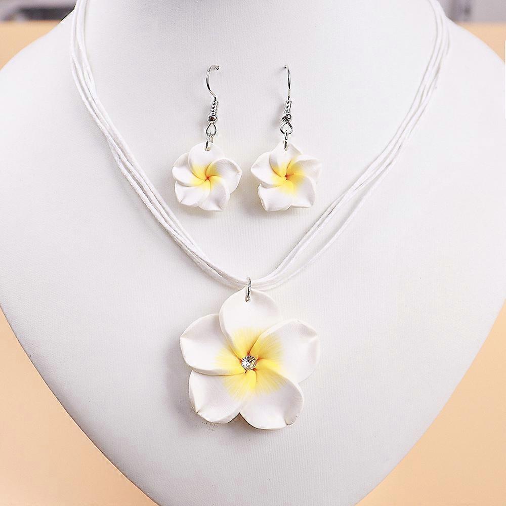 Bohemian Big Flower Braided Jewelry Set for Women Frangipani Flowers Necklace Earrings Girls Beach Party Jewelry Decoration