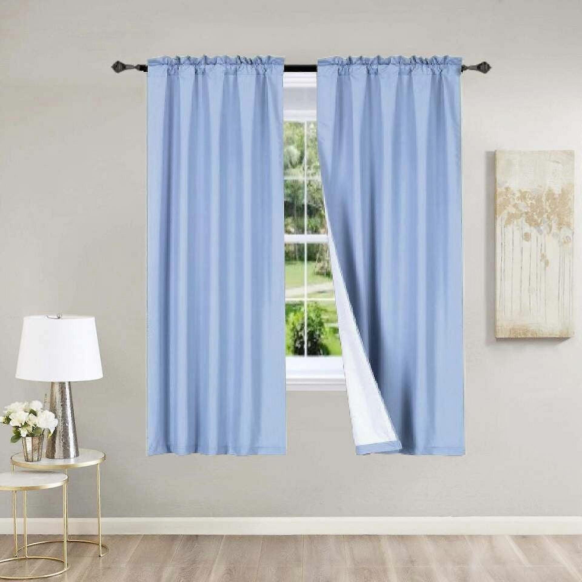 1 panel slate blue rod pocket foam lined thermal blackout window dressing filtering curtain R64 size 35" wide X 63" length