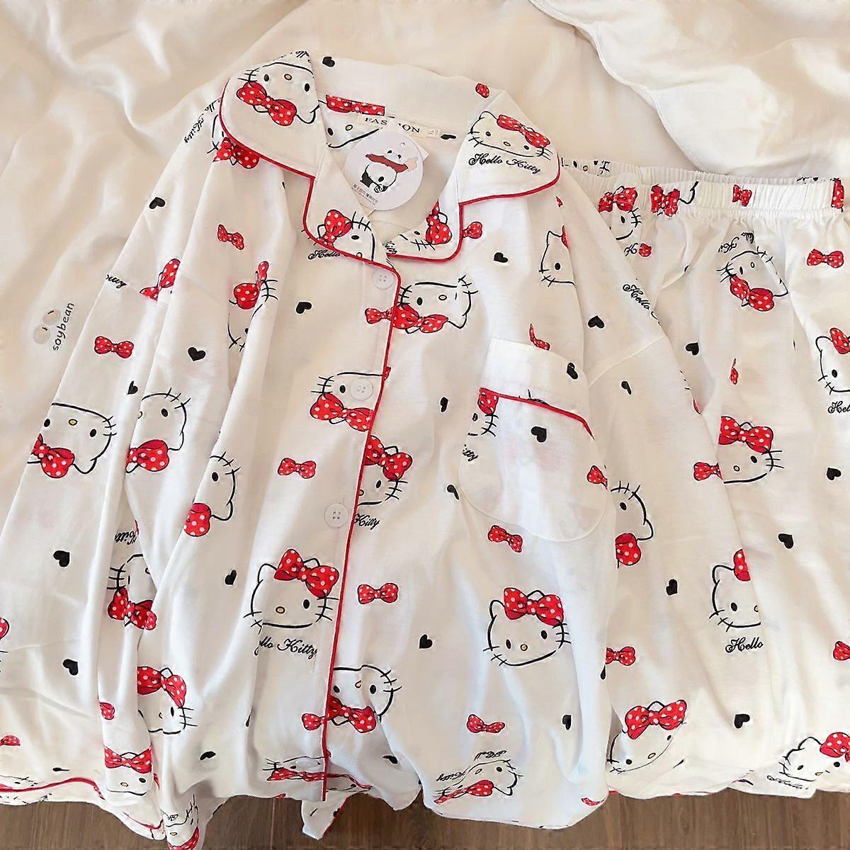 KT Pajamas Casual Long Sleeve Lapel Cardigan Pajamas Homewear Set