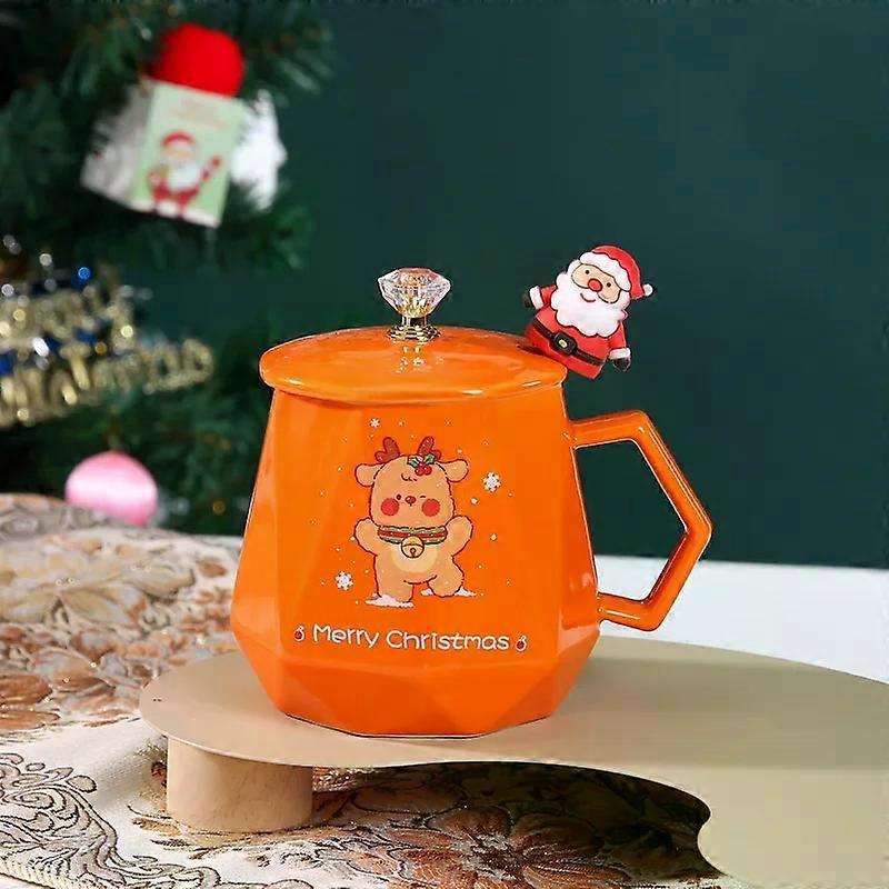 Merry Christmas Ceramic Mugs Santa Clacom Elk Water cup Coffee Mug with lid and spoon Milk Tea Cup Creative Christmas Gift