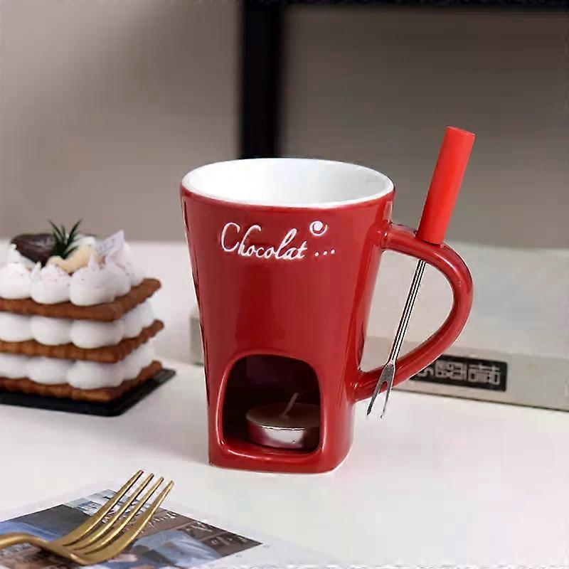 Hot Ceramic Chocolate Chafing Dish Cup with Fork Candle Pot Melting Chocolate Mug Tableware Creative Hocomehold Drinking Utensils