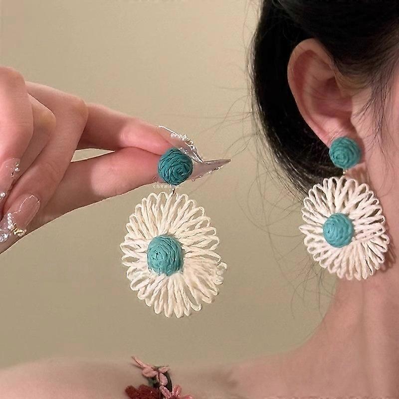 Bohemian Vacation Style Hand-woven Raffia Sunflower Droop Earrings Beach Style Multi-color Fashion Ladies Special Gift ��֧�֧اܧ�