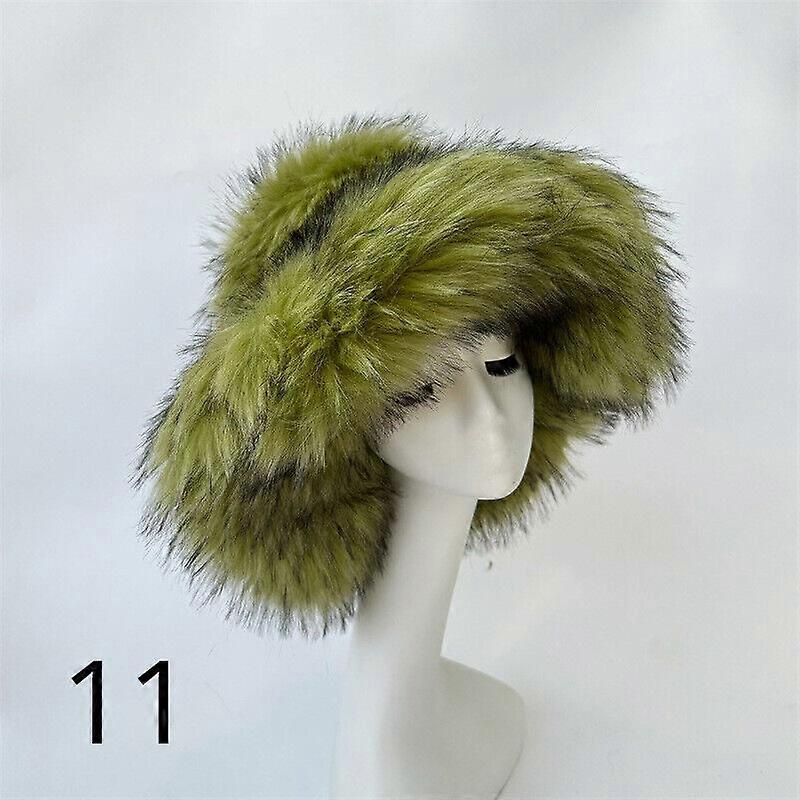 Women Faux Fur Bucket Hat Winter Warm Fluffy Plush Wide Brim Oversized Baggy