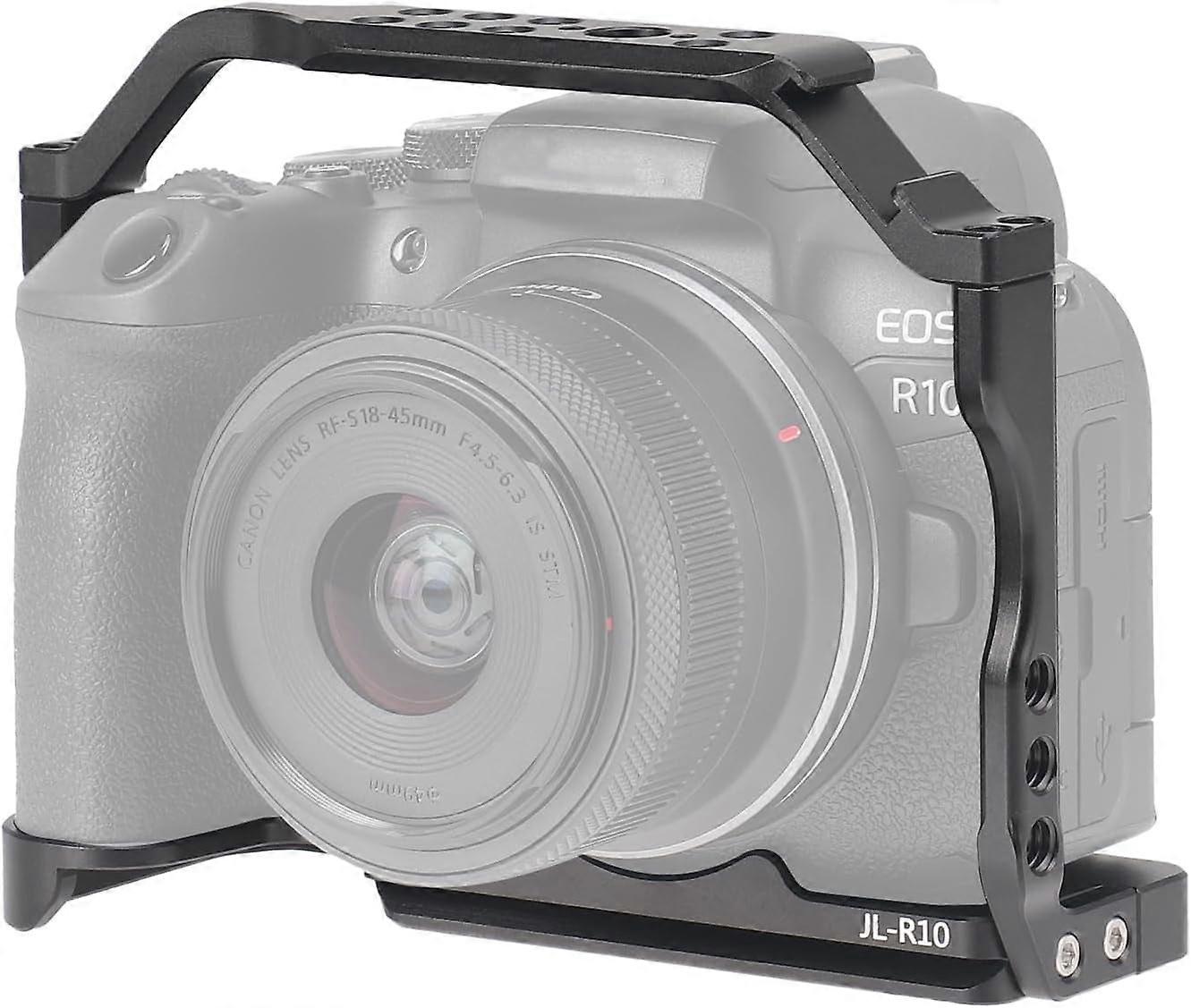 Camera Cage for Canon EOS R10 Mirrorless Camera, Aluminium Video Rig with NATO Rail, Cold Shoe, 1/4" Screw
