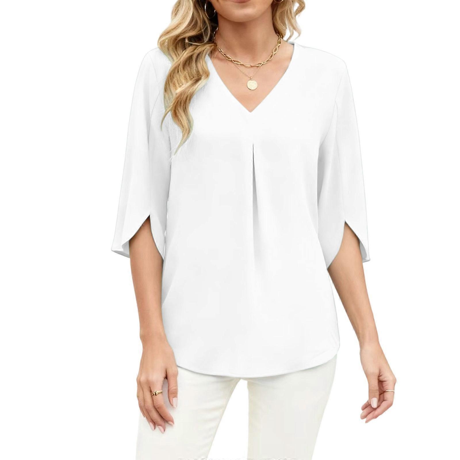 Features: Size: Please check before placing your order to a proper fit. Fabric: This ruffled, slit-sleeve blouse is soft, lightweight, comfortable, breathable, and cool against the skin. Elegant Design: This women's casual blouse features V-neck, delicate pleats , half-slit ruffled sleeves, three-quarter sleeves, and a . Wearing this top will accentuate your modern elegance. Occasions: This casual yet elegant blouse is perfect for pairing with jeans, leggings, trousers, skirts, and , and can also be worn as an inner layer under a . This women's blouse is suitable for various occasions including , casual wear, parties, shopping, work, vacation, weddings, loungewear, sleepwear, photoshoots, church, and the beach. Please note: Due to differences in computer image resolution and monitor settings, the color of this beautiful blouse may differ slightly from the color on the . that your own photos better showcase your . Specifications: fabric, lightweight, breathable, soft, and comfortable. The delicate V-neck design, smooth cut, and meticulous stitching exude elegance. Package Includes: 1X women's shirt V-neck note: 1.Please allow 1-2cm errors due to manual measurement, make sure that you do not mind before you order. 2.Due to the difference between different monitors, the picture may not reflect the actual color of the item.