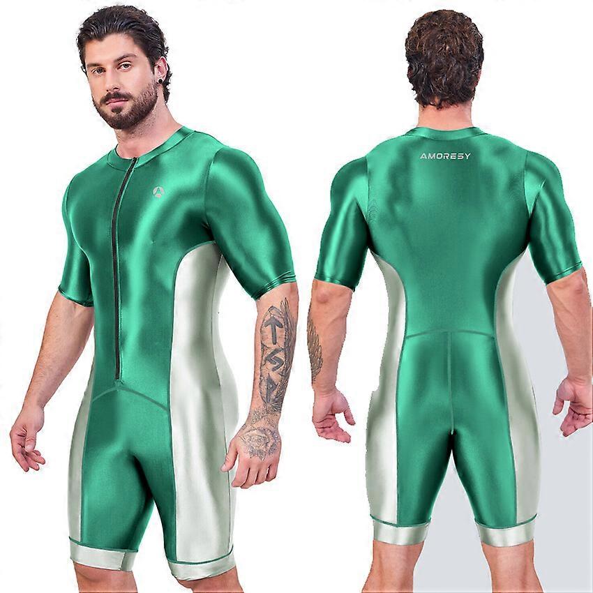 AMORESY Men's Tracksuits Jumpsuits Shiny Glossy Bodysuit Romper Overalls Suits