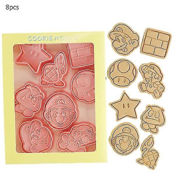 8pcs/set Super Mario Bros Cartoon Cake Molds Embossed Cookie Stamps Cuter Moulds For Cake Kids Party Decoration