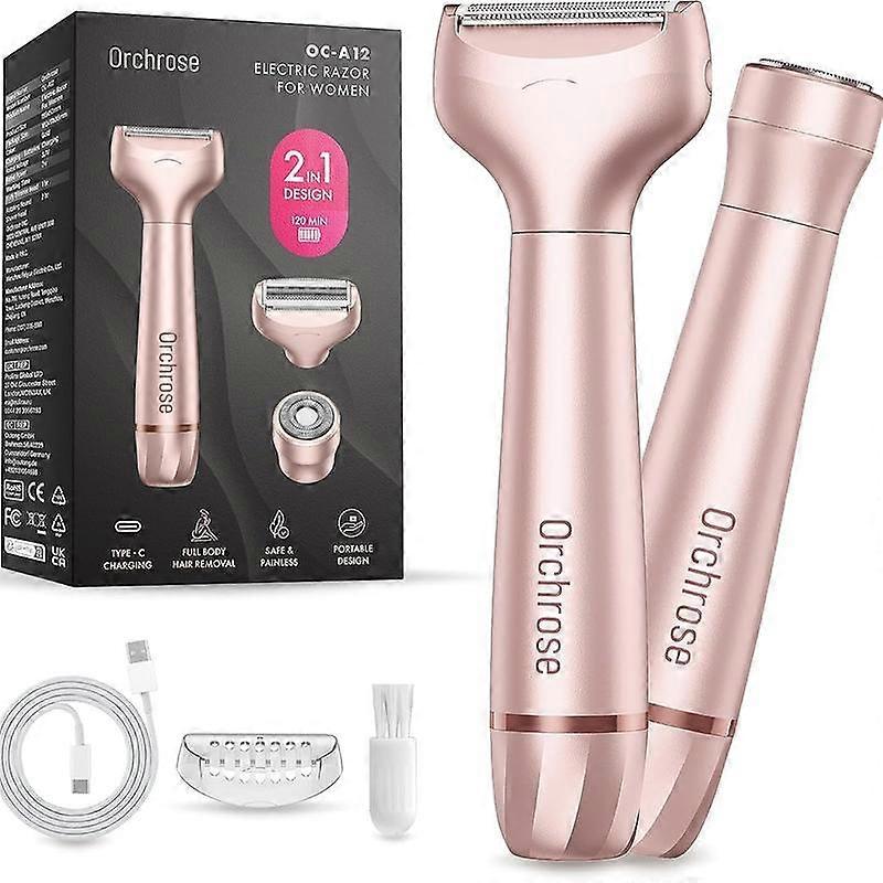 Orchrose Electric Razor- 2 in 1 Shaver & Trimmer for Women,Portable Rechargeable Hair Removal Kit for Face,Body,Leg, Bikini,Underarm &Arm Gi