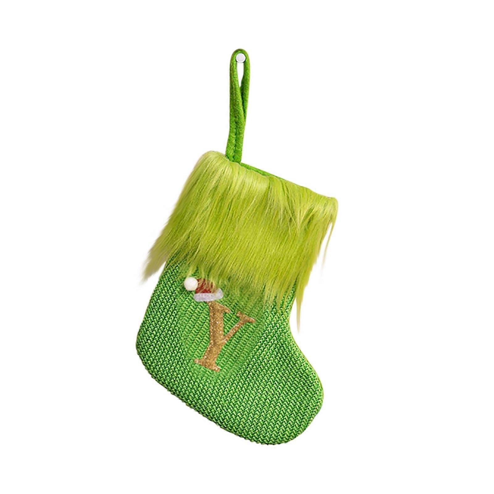 Wadada 8" Mini Monogram Stocking Green, Initial Y, White Cuffs, Cable Knit, Christmas Alphabet Decor for Home, Fireplace, Gifts