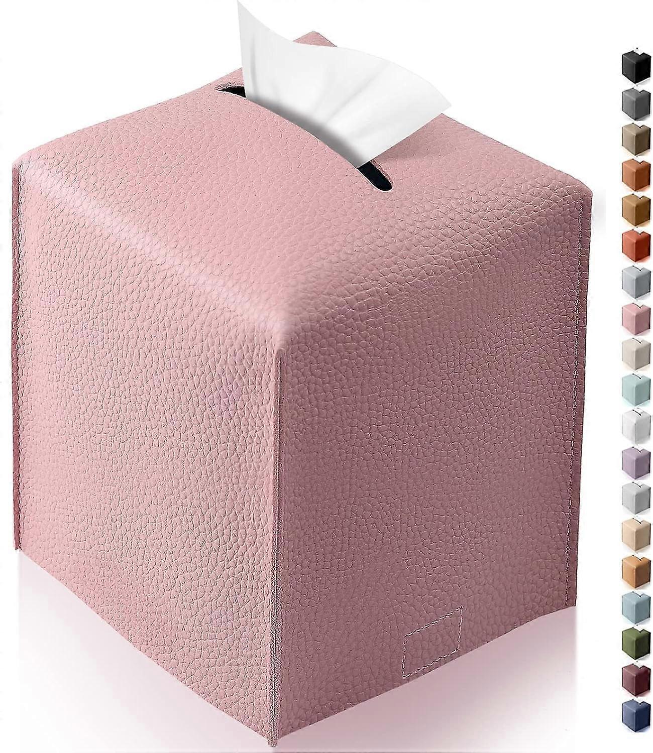 Kiibsot Tissue Box Cover, Modern PU Leather Square Holder Compatible with 5"X5"X5" Boxes, for Bathroom/Office/Car/Nightstand/Table Decor