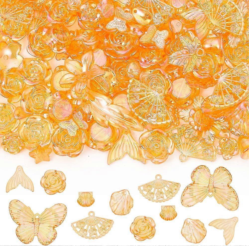 1 Box 100g Resin Butterfly Flower Charms, 3D Orange Acrylic Transparent Cabochons for DIY Jewelry, Scrapbooking, Phone Case, Nail Art