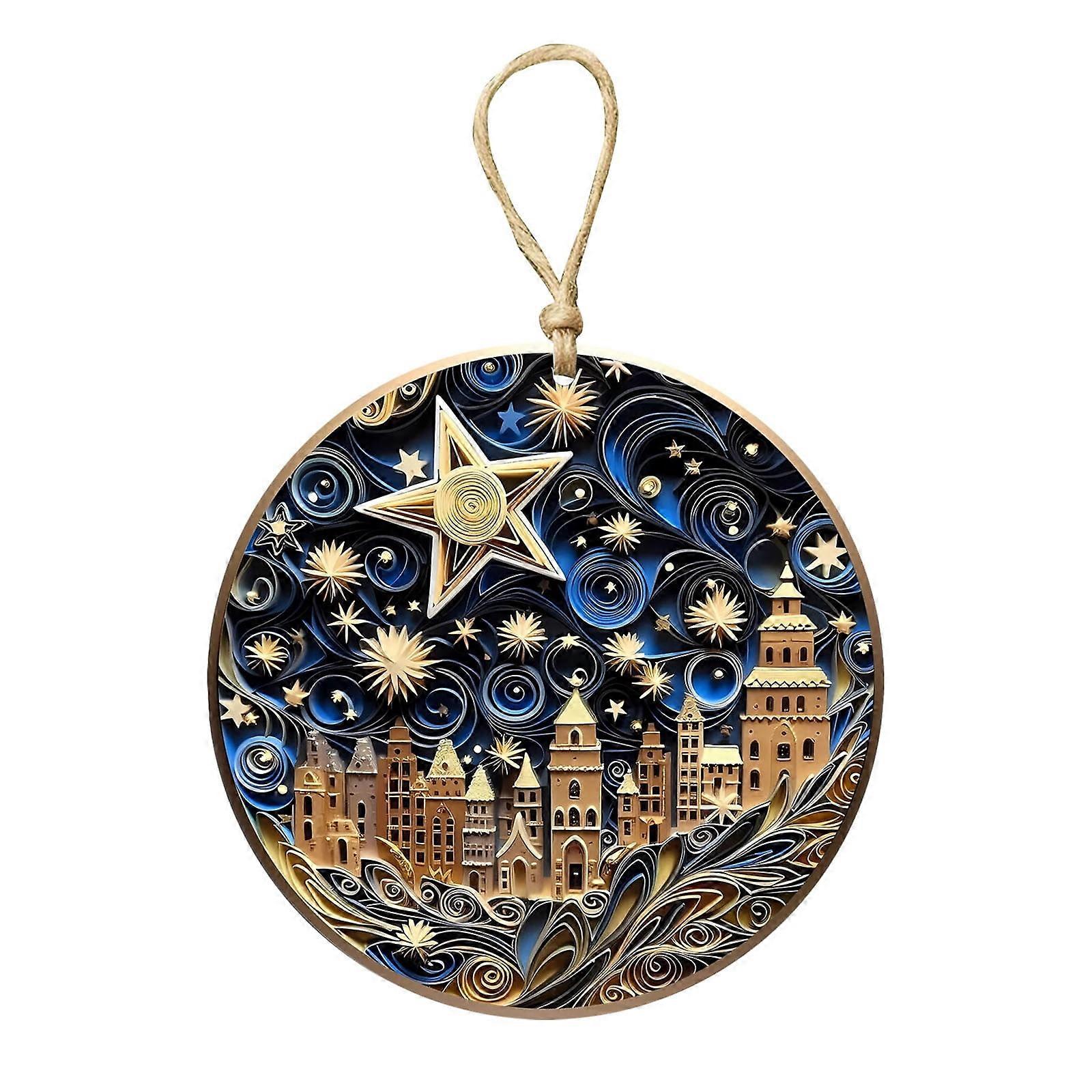 Acrylic Christmas Ornament, Navy Blue & Gold Angel, Tree, Snowman Design, Sacred Xmas Hanging Decor for Home Party