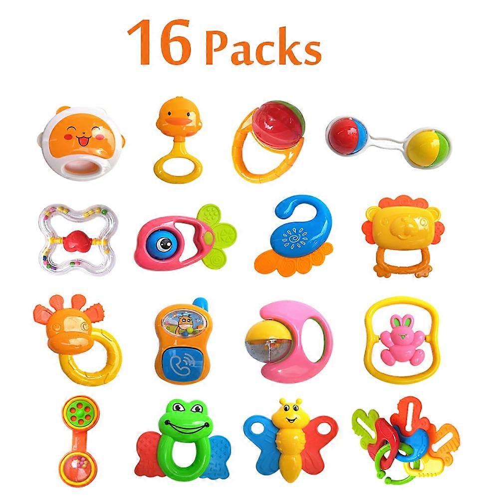 16Pcs Baby Rattle Toys,Infant Shaker,Teether,Grab and Spin Rattles,Musical Toy Set,Newborn Baby Gifts for 0,3,6,9,12 Months Girls Boys