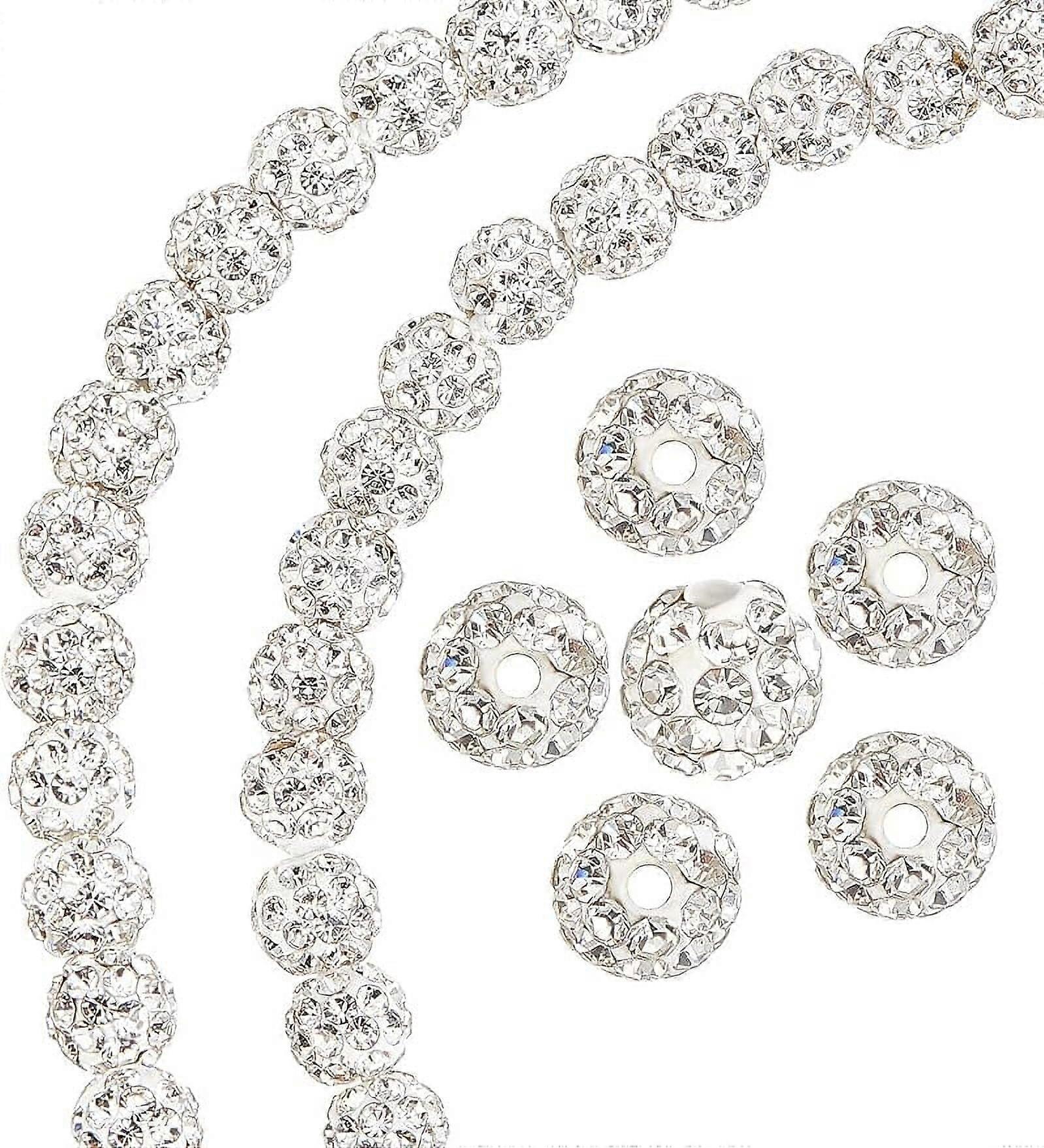 Rhinestone Clay Beads 50 Pcs 6mm Pave Disco Ball Round Czech Crystal Polymer Clay Rhinestone Bead Charm Spacer Bead for Earring Bracelet Necklace Jewelry DIY Craft Making White Sparkling Beads: each rhinestone bead is crafted with clay and completed with vibrant sparking rhinestones, can add light reflection and additional glitter to jewelry designs, and make the whole beads look very bright and beautiful. Quality Material: the rhinestone clay beads are made of high quality polymer clay and glass rhinestone, durable and economical, sparkling appearance is also very pretty and textured, friendly to your skin, suitable for daily wearing. Value Pack: package includes 50pcs white rhinestone clay beads, about 6mm in diameter, hole: 1mm, rhinestone: PP9(1.5~1.6mm). Proper size for stringing with elastic cord, waxed cords, strings, and will match different beads. Suitable for DIY: crystal clay beads can be used for making earrings, bracelets, bangle, pendants, anklets, hair clips, hair ring, key chains, backpack pendants, car key pendants, bag decorations and so on. Wide Applications: these round polymer clay rhinestone beads can be designed into gifts for your lover, friends, family members, relatives, colleagues, neighbors; suitable for Mother's Day, Thanksgiving Day, Valentines Day, , etc.