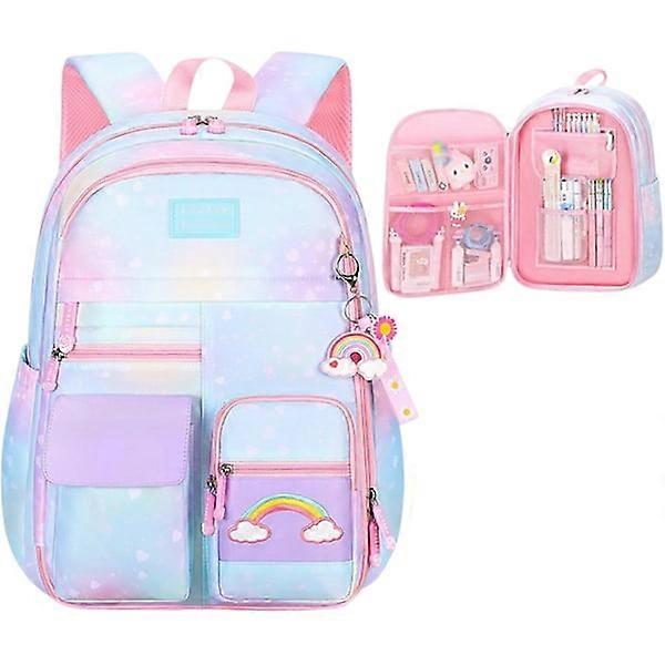 Rainbow Girls Gradient Backpack - Cute Starry School Bag with Removable Pencil Case, Laptop-Compatible Travel Backpack for Stu Gradient Blue M