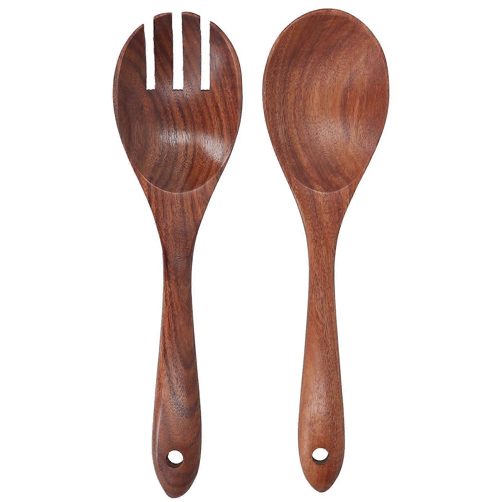 Dekaim Wood Fork and Spoon Set Acacia Wood Fork and Spoon Set Salad Toss and Mix Servers Cooking Spoon Spork Set