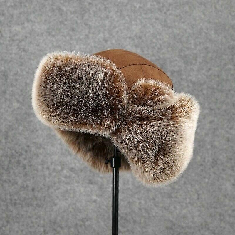 Men Winter Ushanka Russian Cossack Faux Fur Trapper Hats Suede Leather Warm Cap