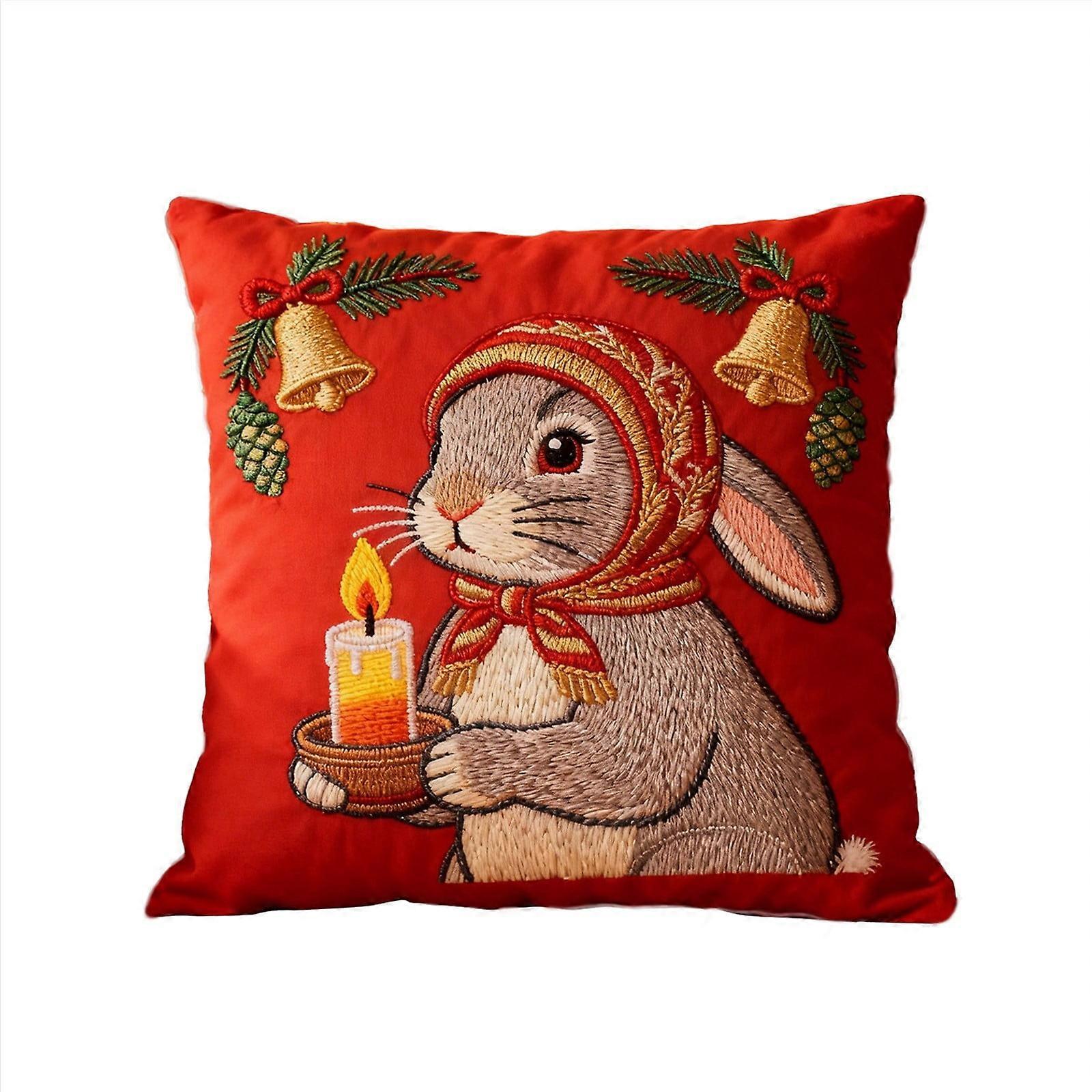 Christmas Pillow Covers 17.7x17.7 Inch, Festive Cushion Covers with Santa, Reindeer, Bunny, compatible with holiday decor, soft plush for sofa, couch