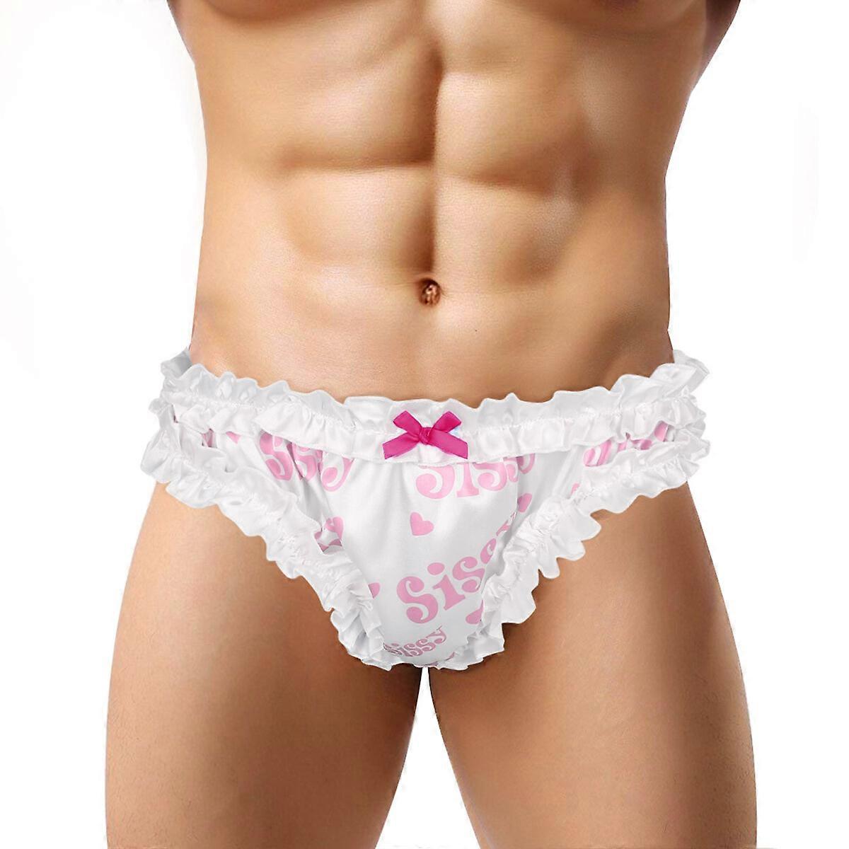 Men's Sissy Satin Lingerie Heart Print Ruffled Bloomers Bikini Briefs Underwear