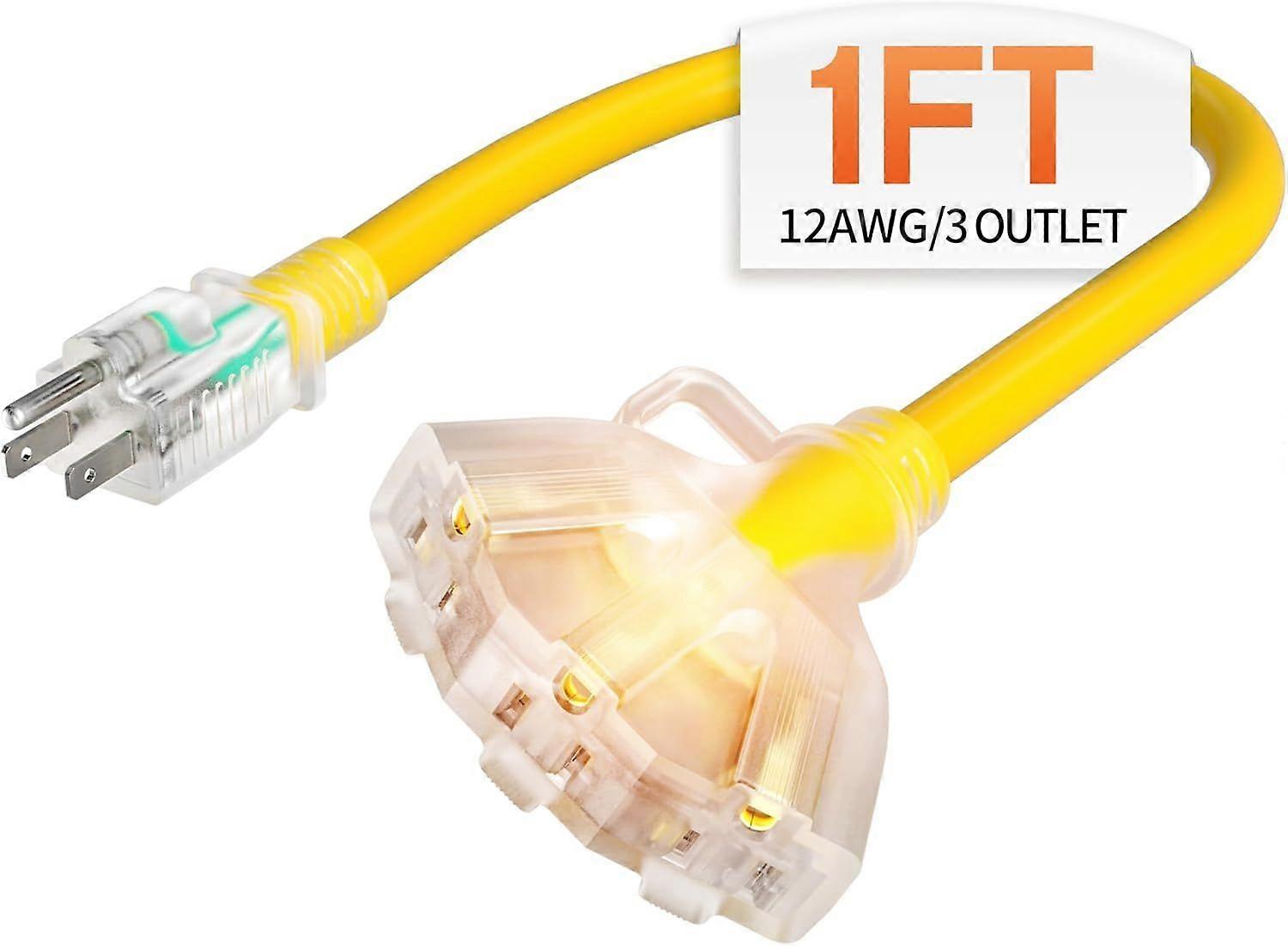 1 ft 12 Gauge Heavy Duty 3 Outlet Extension Cord Splitter with Indicator,