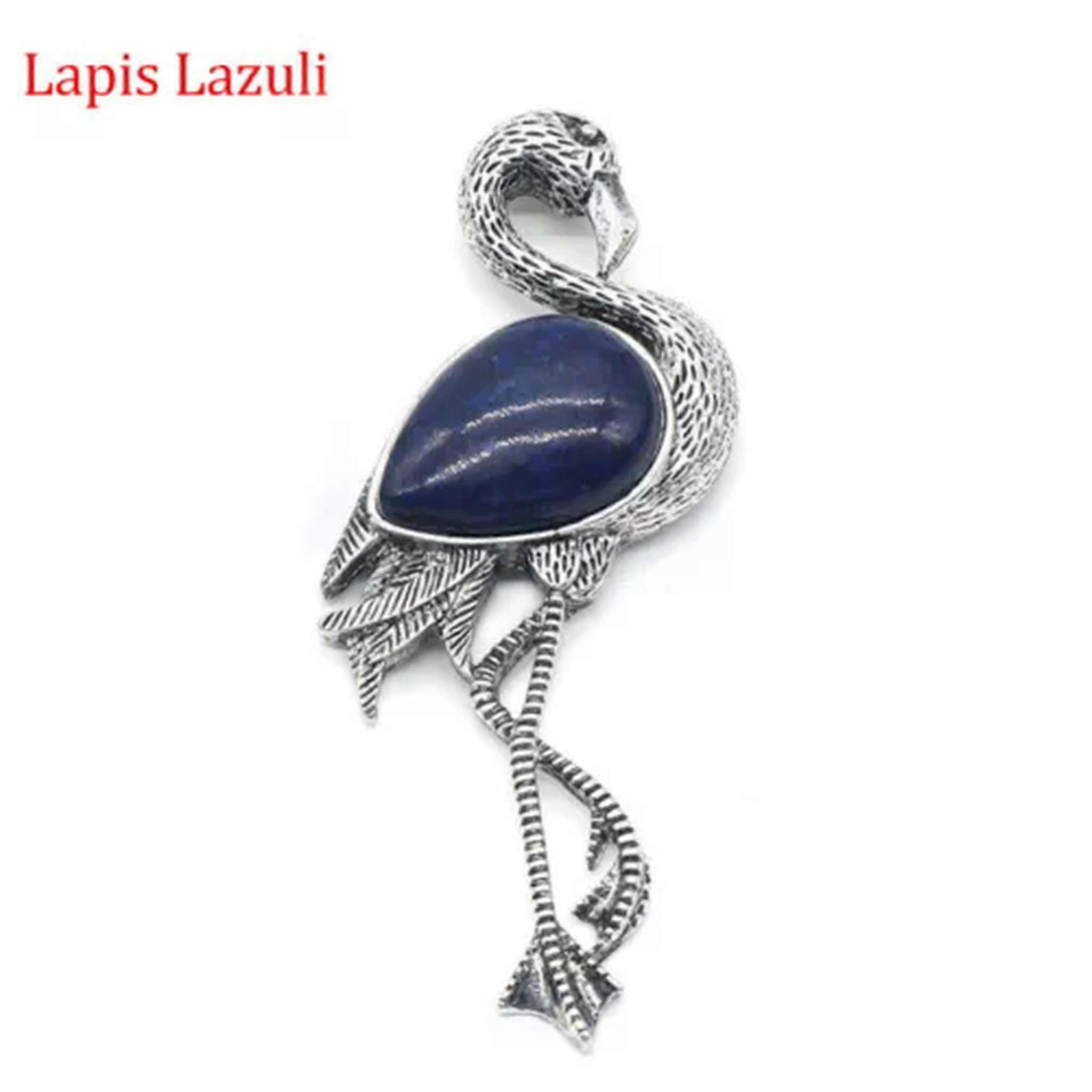 RSAMD 1X Flamingo Crystal Brooch Pendant Pin Chakra Agate Stone Animal DIY Gift Skull-1PC (Random Pick)-Lapis Lazuli