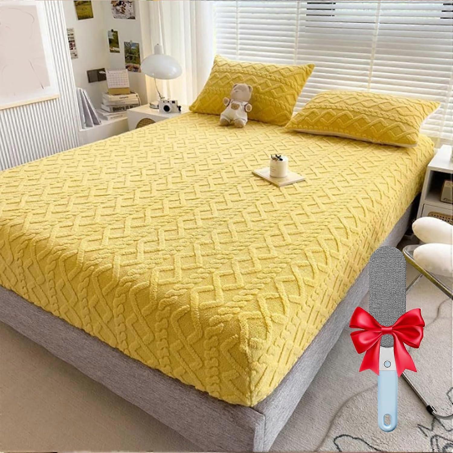 Luxury Velvet Mattress Cover Set, Breathable & Noiseless Pad Cover Compatible with California King (200x230cm), Yellow